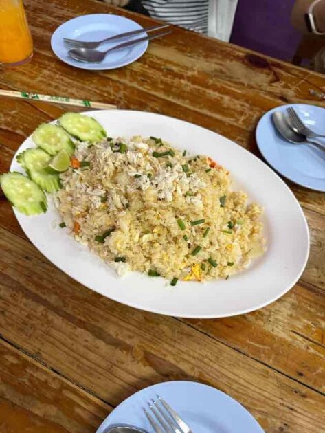 ふわっとした卵に、にんにくと油のコクがしっかり絡み、ご飯が止まらなくなります。派手さはないけれど、現地の人が日常的に食べている理由がよくわかる一品でした。