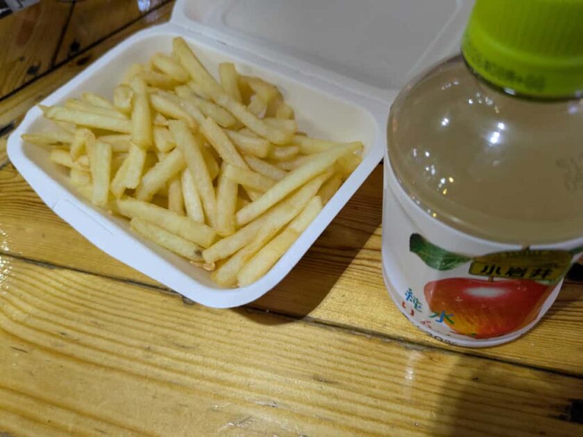他の人が打っているのを見ながら、売店で購入したポテトをつまむのも乙なものでした。