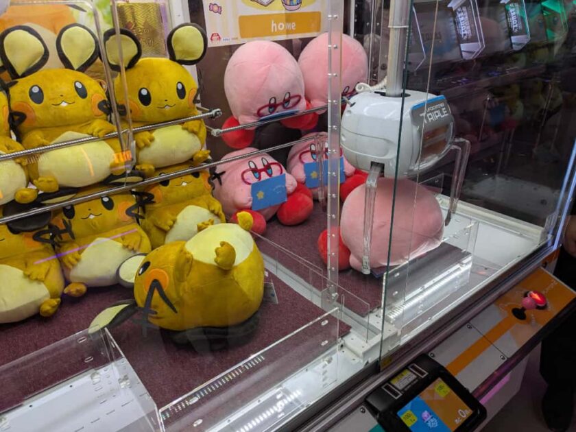 最後はクレーンゲーム!1,000円以内と決めてチャレンジしたところ、なんと最後の1プレイで景品をゲットすることができました!嬉しい!